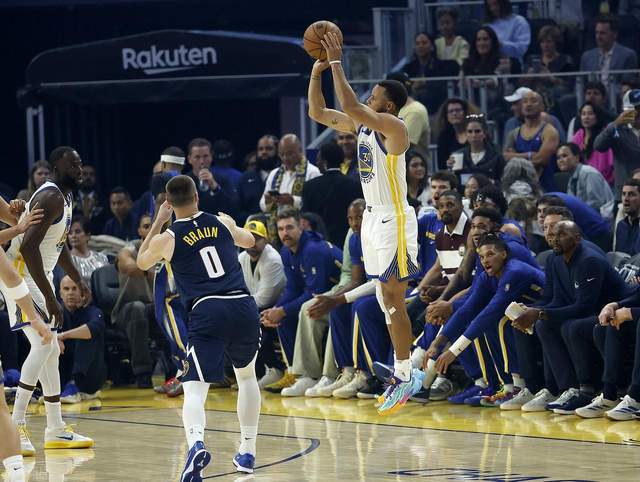 勇士队库里在对阵掘金队的比赛中,比赛末段爆发让球迷们为之疯狂